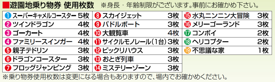 ※乗り物券の販売は閉園時間の10分前です。