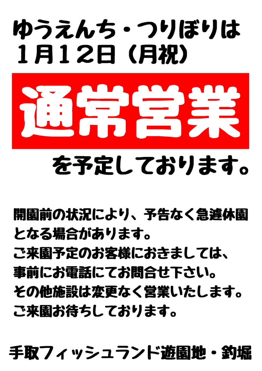 ゆうえんち・つりぼりは、1月12日(月祝)通常営業を予定しております。