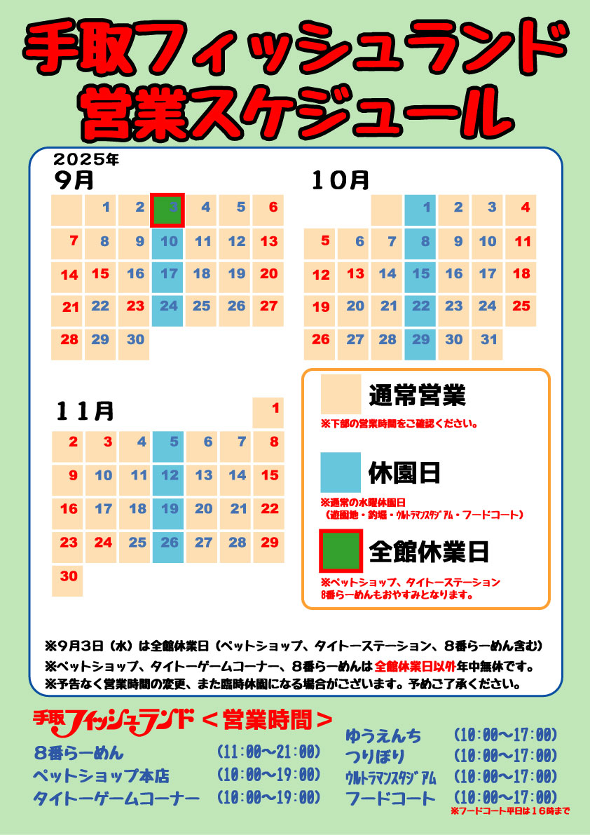 2025年9月〜11月営業案内