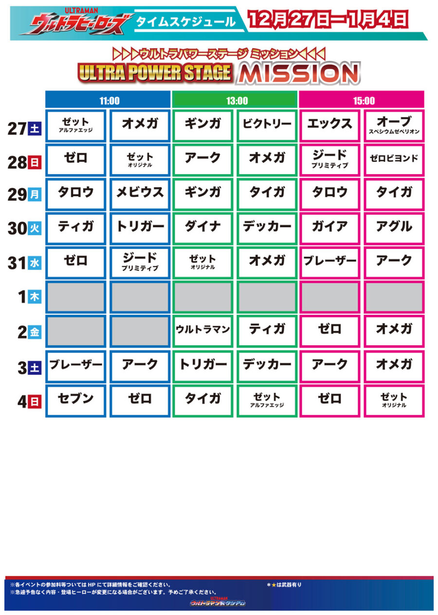 ウルトラヒーロータイムスケジュール(12月27日〜1月4日)